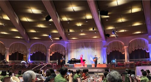 とにかく広い大宴会場?という言い方でしょうか。毎晩ショーがあります。この時はメキシコ人のダンスとバンド演奏だったかな。 夕食はメインのローストビーフなど、品数多く食べきれない?完食してます(⌒-⌒; ) 朝食バイキングも、最近情報番組で見たように、…