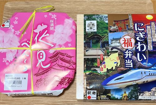 ゴールデンウィークの初日です。 子供から観劇に誘って貰えたので 都心に出かけました。 晩御飯は家で食べるために、 東京駅構内の有名駅弁屋さんへ。 いつも大賑わいの『祭』に寄りました。 子供が選んだのは、 北陸、福井の「にぎわい福弁当」1,750円 私は…